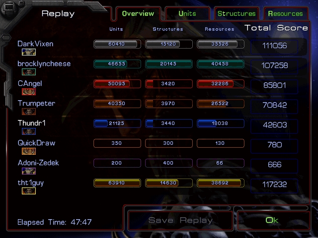 That One Team then moved in to finish Peter's main base off with a concerted attack of varying units from each of the team member's troops.